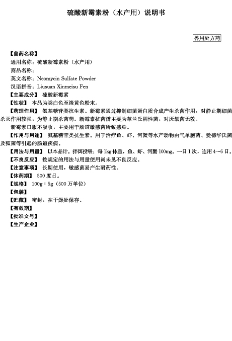 用于治療魚、蝦、河蟹等水產動物由氣單胞菌、愛德華氏菌及弧菌等引起的腸道疾病。